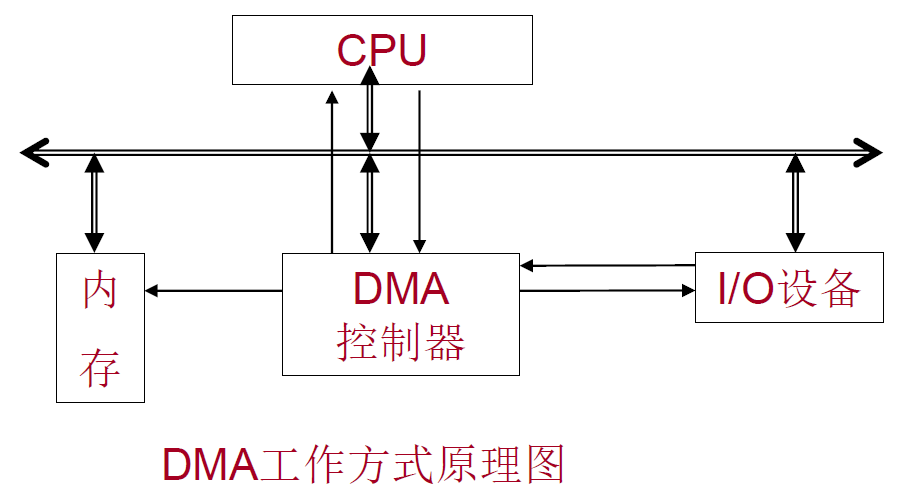 - : 通过硬件控制总线实现主存与 I/O 设备间的直接数据传送, 在传送过程中无需 CPU 程序干预